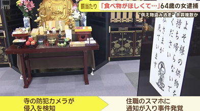そんなニュースに考え込んでいたら、今度は札幌でお供え物を盗んだ老女が逮捕されたと報道があった。