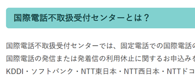 国際電話を受けないようにするには、特に煩雑な手続きは必要ない。国際電話不取扱受付センターに電話して、つながないよう依頼するだけである。再開したい時はいつでも再開できる。詐欺電話しか掛かってこないなら、速攻で手続きするだけである。