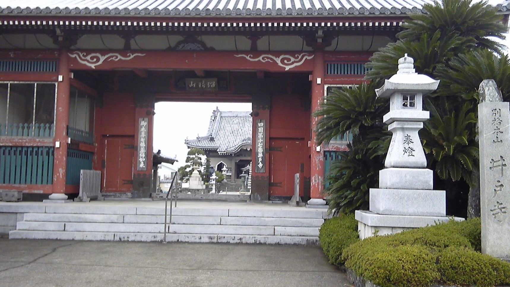 十七番札所、瑠璃山井戸寺。「四国遍路道指南」には井土寺と書いてあるが、意味としては同じである(井土の方が本来の意味に近いともいえる)。弘法大師空海が、水不足に悩む土地の人のため掘った「面影の井戸」があり、これが寺の名前となったとされる。