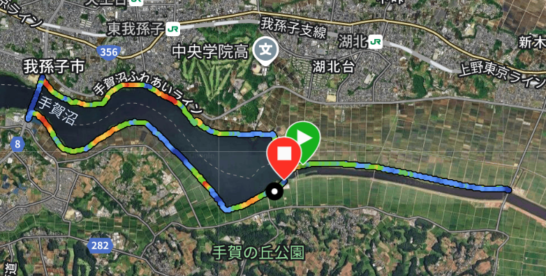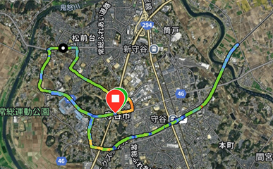 守谷ハーフの試走に行ってきた。意外とアップダウンがあって難しい印象。ところどころの濃い青は信号待ち。守谷トンネルは歩行者が入れなかったので、ぶっつけ本番になる。