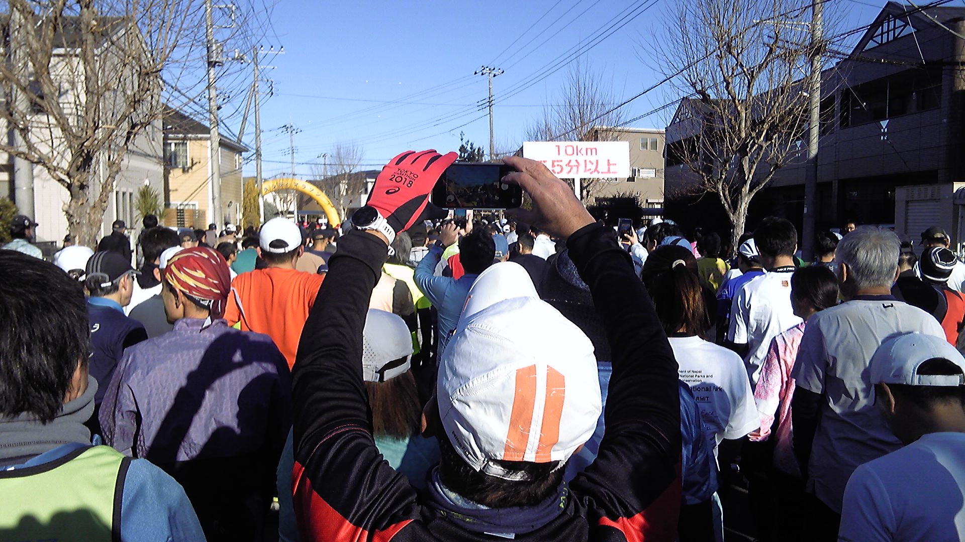 さきの将門マラソンでの10km通過は、雨天湿走路で1時間9分台。その時の1kmは6'47"で、11kmまで6分台だった。将門の時と違ってスタート前に降っていなかったので、準備体操もちゃんとできた。このペースで走れれば、10マイルの先頭グループに迷惑をかけることはない。