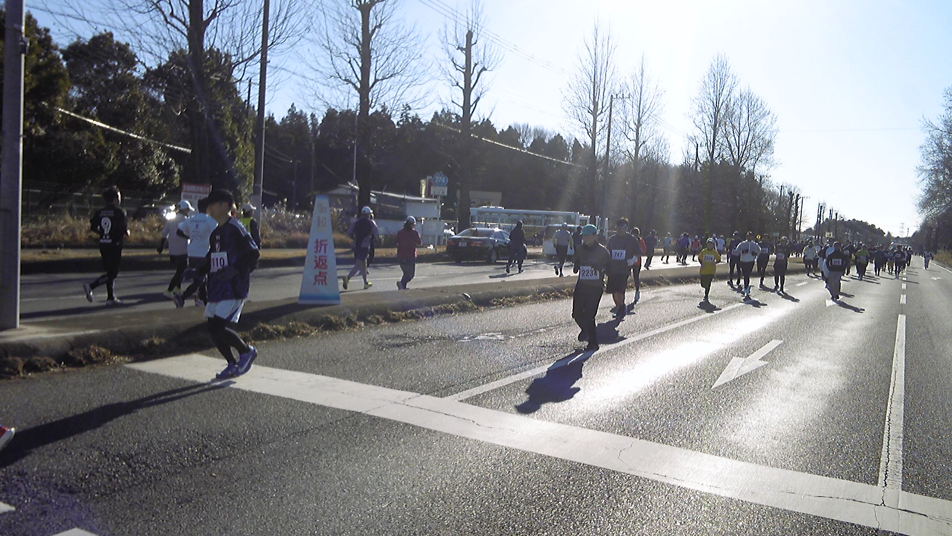 そして、もうひとつ記事を書いて気が付いたことがある。今回のコースは、スタートして水道局まで1周して戻ってから守谷高校方面に出るのだが、1周は約1.4kmである。先頭集団はkm3分くらいで走るから、4分スタートロスということは、すぐ後ろに先頭が迫っていたことになる。