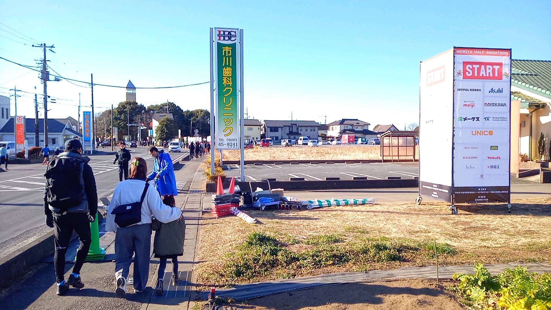 守谷市役所は大混雑。トイレに30分前に並び、荷物を預けてスタート地点に行くと2分前だった。市役所は行かないのが正解。