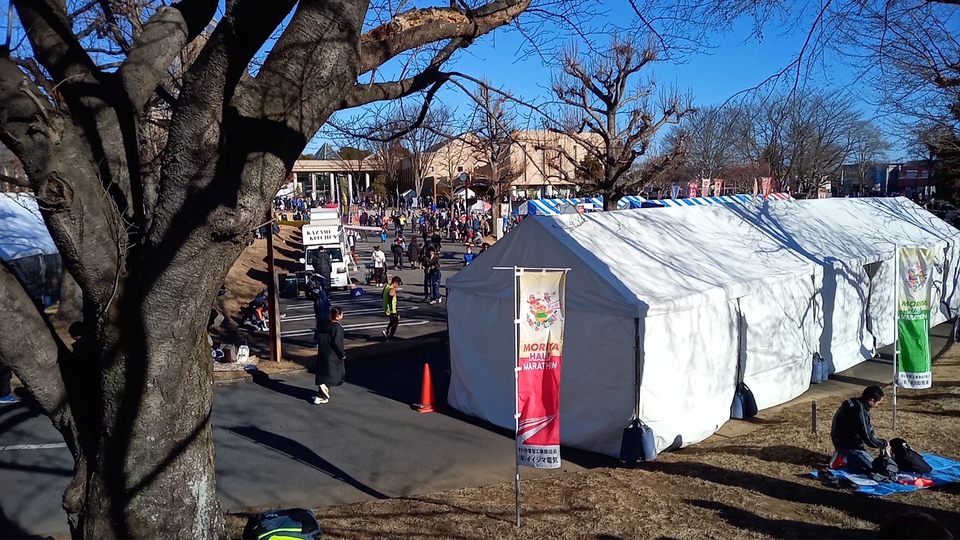市役所の敷地内はごった返している。一応、休憩テントはあるけれど一杯で、みんな外で待機している。まあ、コロナやインフルエンザのリスクを考えればその方がよさそうだ。私も、大木のあたりで準備運動。そうしている間に、5kmのスタートの放送がある。
