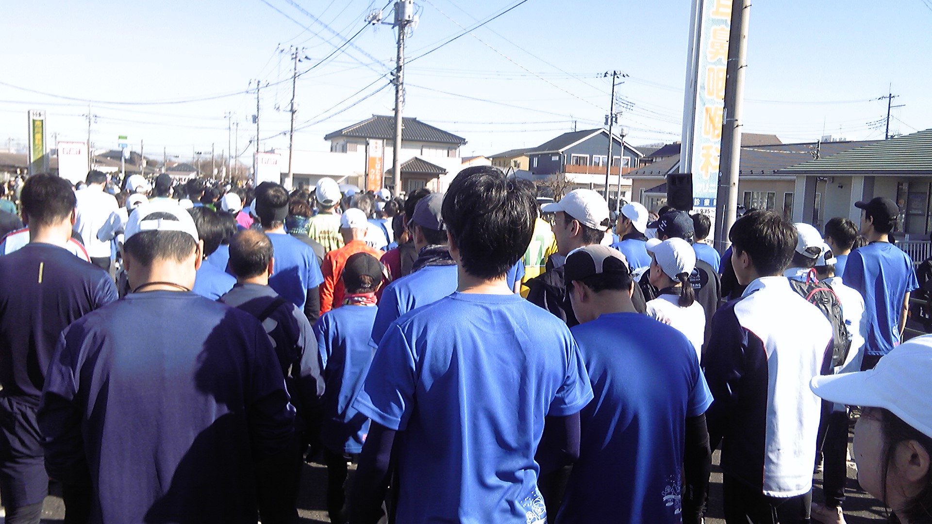 30分前にスタート地点に向かうと、小学校入口にすでに「満車」の掲示が出ていた。再度、宗吾霊堂に向かう。学生さん達の多い大会で、普段のマラソン大会より年齢層が若い。順天堂や明治のユニフォームを着たランナーが、歩道でウォームアップに余念がない。
