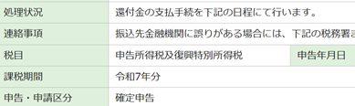 申告日からちょうど2週間、マイナポータルに通知があった。昨年までだと、振込入金となった頃合いである。