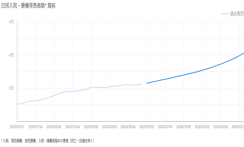 1ヶ月前に、Googleが日本のコロナ感染予測を発表し始めたという記事を書いたけれど、実際に12月半ばになってみると、Googleの予測したように入院・療養患者数が11月半ばと比べて3倍ということにはなっていない。1.5倍くらいである。