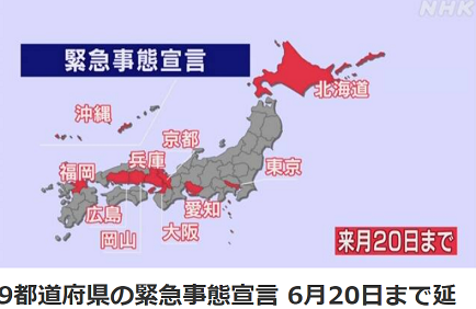 5月31日までだった緊急事態の期限が、6月20日まで延長された。追加で対象区域に含まれた沖縄県だけが長く指定されるのは妙だと思っていたのだが、当初からそういう予定だったようである。