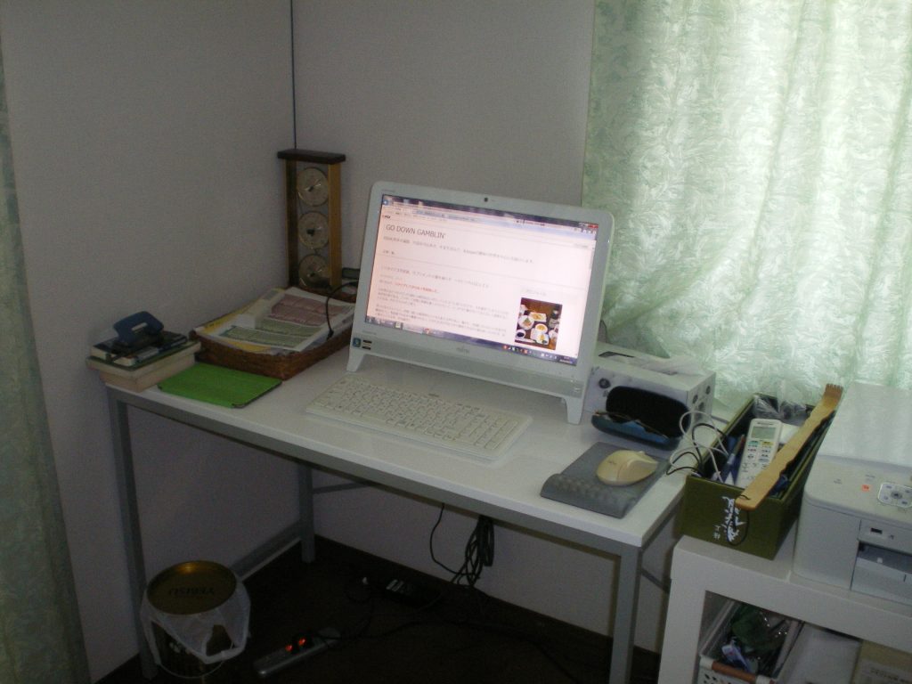 四六時中顔を合わせていると奥さんのストレスになるので、普段はパソコンのある八畳洋間にいる。2階にあるので窓から外の景色が見え、気候がよければベランダに出て星を見ることもできる。ローンの終わった自分の持家で、このくらいの居住スペースがあるのはありがたいことである。