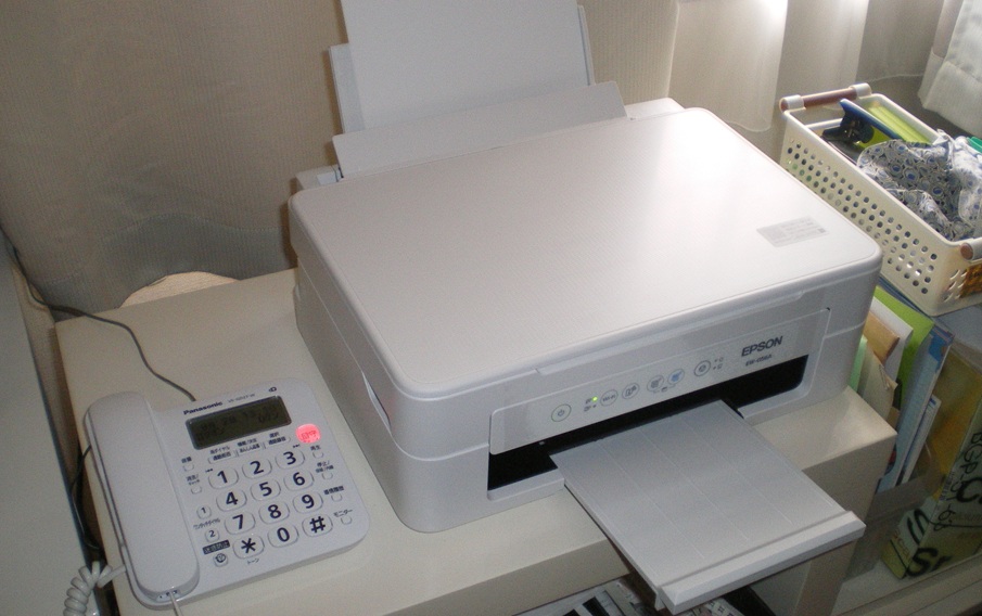 これまではブラザーだったが、今回はエプソン。普及機種の品揃えがいいのと、インクカートリッジがホームセンターでも売っている。サイズも若干小さい。