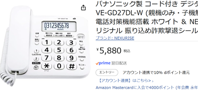 プリンタやスキャナがないと困るし、固定電話も今すぐなくすことはできない。とりあえず必要な固定電話を手配した。amazonで5,880円。もちろん留守電も付いているし、迷惑電話防止機能もある。ナンバーディスプレイはNTTに支払い済で、昔と比べて嘘みたいに安くなった。