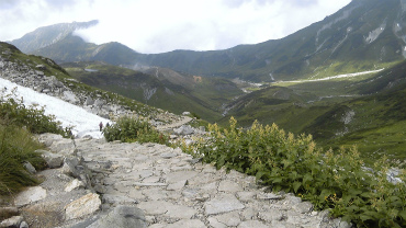 この室堂から一ノ越のルートは、「孤高の人」加藤文太郎が登ったルートでもある(もっとも冬だが)。剱沢小屋で前のパーティーに追いついたところ、「ちゃんと案内人をつけて来い。案内人を雇う金がないなら冬山に来るな」と室堂に追い返されるのだが、直後に剱沢小屋は雪崩に襲われてしまうという場面がある。本当の話である。