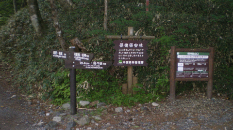 分岐のところには道標とともに注意書きの看板が立てられていて、ここから先は登山道なので登山装備がない人は入らないように、入る場合は必ず登山届を出すようにと書かれている。