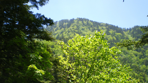 久しぶりのテン泊なので心配したが思ったより熟睡できて、朝の体調は悪くない。前月の御前山よりずいぶん足が軽い。小梨平から明神まで、林間の道を歩く。
