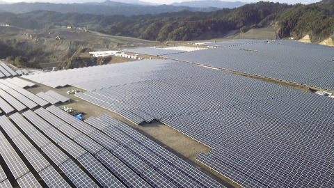 電子国土だけ見ていると、土砂採掘場にでもなったのかなと思っていたし、実際に遠くの方ではトラックが行き来していたのだが、そのほとんどは太陽光発電のパネルが敷き詰められ、山を埋め尽くしている。ある意味絶景といえなくもないが、よく考えると恐ろしい風景である。ゴルフ場だって自然破壊だが、それ以上ともいえる。