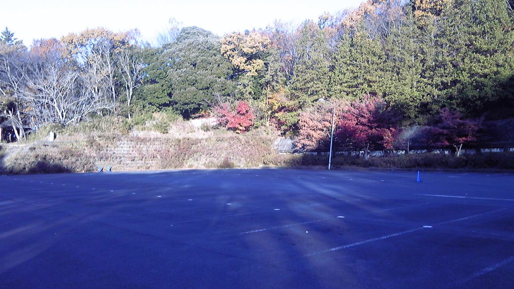 早朝の市営駐車場はがらがら。紅葉はまだきれいなのに、コロナの影響だろうか。