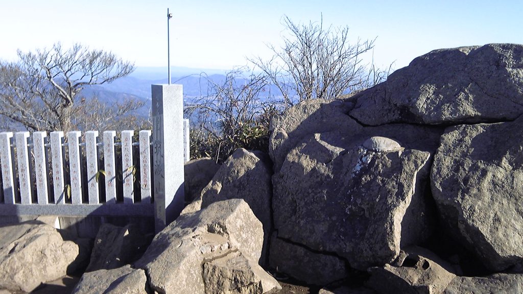 関東ふれあいの道と分かれてから、しばらくして急坂となるが、それも大したことはなく高峯山頂に到着。12時25分、さきほどのベンチから30分かからずに着いた。