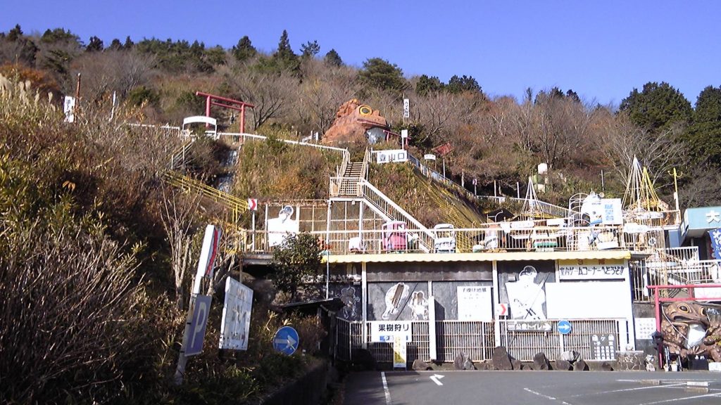 弁慶茶屋跡からつつじヶ丘まで50分ほどかかった計算だが、そんなに歩いた気がしないほどすぐに下りてこられた。登山道の出口には遊具がたくさん置かれていて、閉まっているお土産屋さんの前に出る。