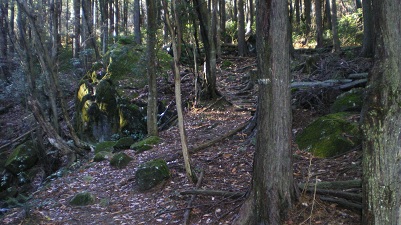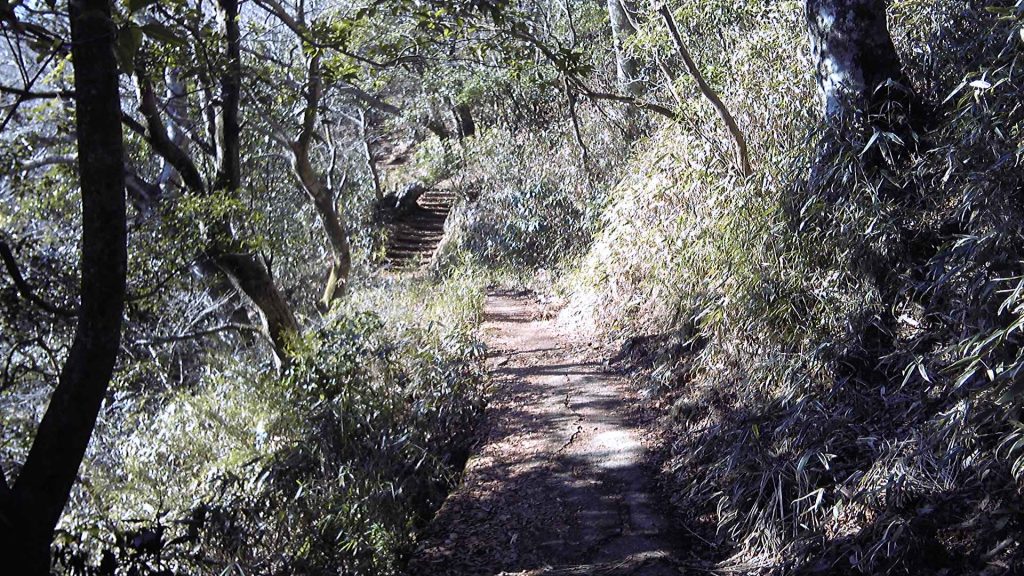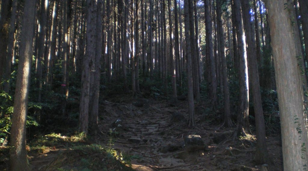 薬王院コースは、かつて薬王院の修験者達が使った道という。林道との交差までは、比較的緩やかな傾斜が続く。