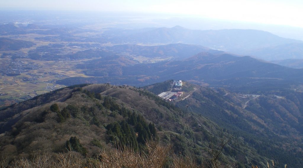 女体山神社の裏から、橋を渡って頂上に出る。平日の昼前のせいか、前に来た時より人は少なくて待っていたら頂上は無人となった。天気がいいので、霞ヶ浦まで一望できた。