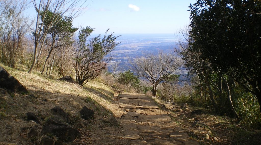 ようやく薬王院分岐を過ぎて、さらに下るとみかん園の横を通る。筑波山の東側は冷えるのだが、薬王院のあたりだけは風向きのせいで暖かくみかんが作れるのだそうである。この日も、3台ほど車が止まっていた。