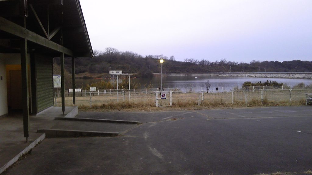 登山口となるのは、つくし池駐車場。ここは桜川市で整備している駐車場で、トイレもちゃんとある。ところが、隣にある産直の駐車場と見間違えてダムの堰堤付近を行ったり来たりしてしまった。午前7時過ぎに到着、たいへん寒い。