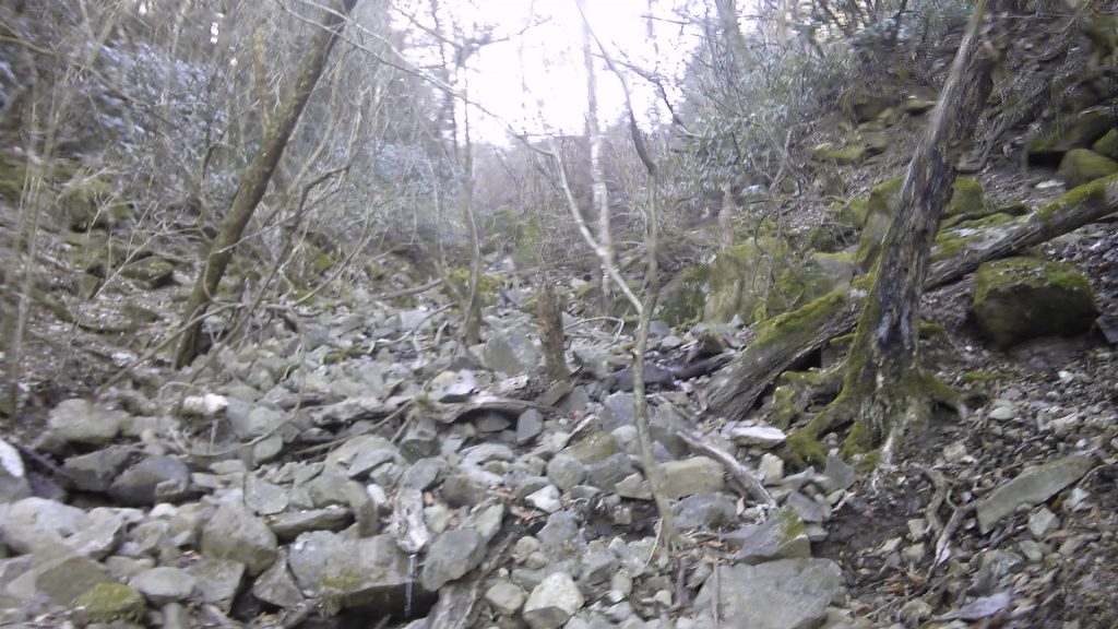 登山口に1時半前に着いたので、3時は無理かもしれないが、3時半くらいには岩瀬駅まで戻れそうだと思った。ところが、今回最大の山場はここからなのである。