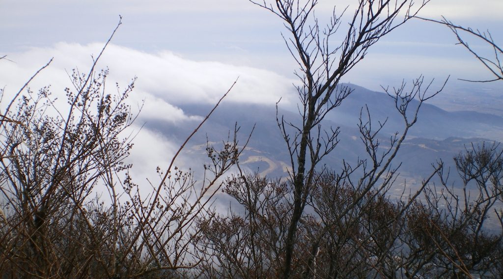 奈良駄峠からここまで4、5人に抜かれたし、ここには先客がいて、ここから県道登山口までやはり4、5人と会った。平日なのにそれなりに歩かれている山のようだ。ただ、山頂からは木々に阻まれてほとんど展望はない。