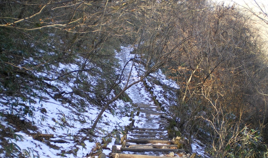 しかし、後からするとこれはベストの選択だったのである。ユースホステル跡から登る深峰歩道はこの冬通行止めで、行っても途中で行き止まりになっていたのである。