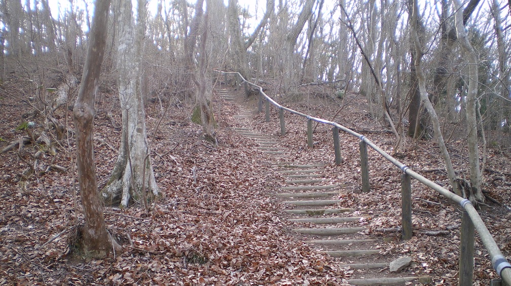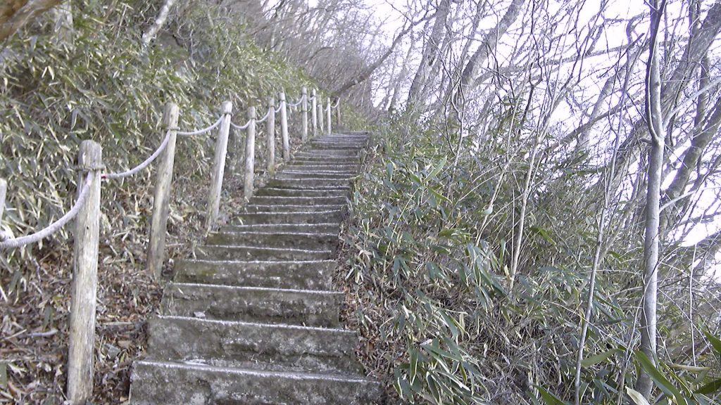それからすぐに急こう配の登り階段があったが、これはパラグライダー場跡のようだし、巻き道があったのでそちらを進んだ。再び登山道と合流して、あとはひたすら下る。