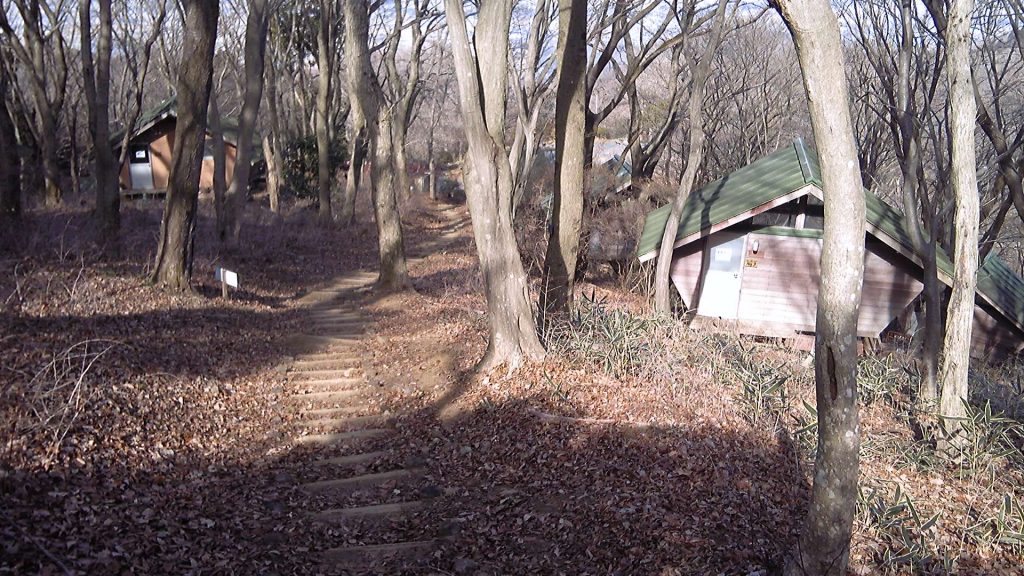 しばらく歩くと、再び林道に出る。合流点から下ると国民宿舎跡になるが、左に中腹を進んで筑波高原キャンプ場に向かう。すぐに、右から登山道が登ってくる。以前、湯袋峠から登ってきた道だ。そしてすぐにキャンプ場に着いた。