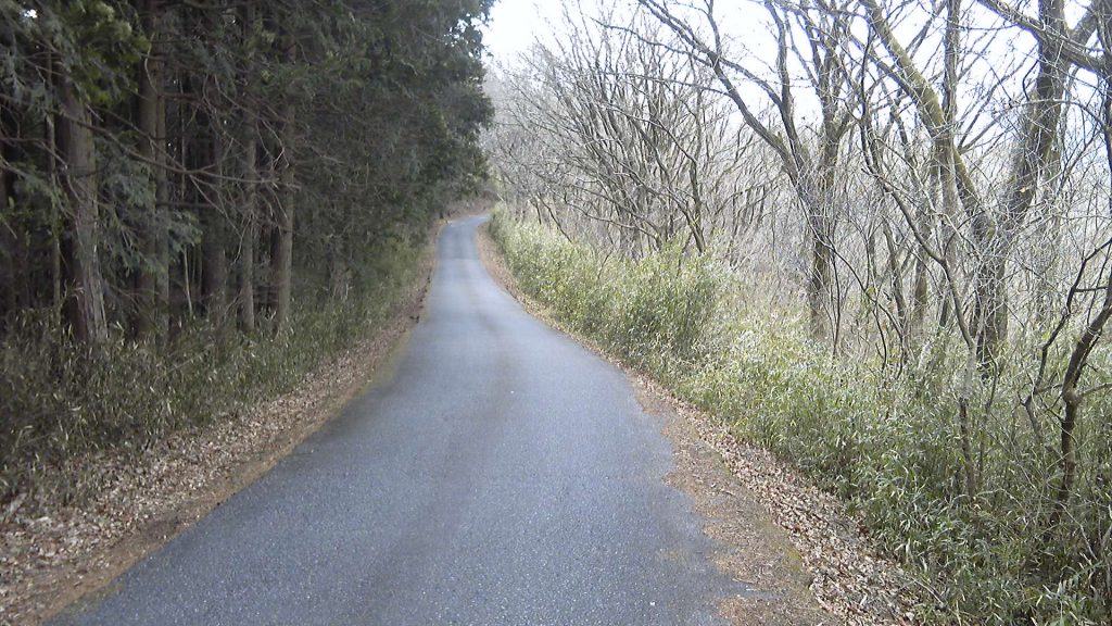 男の川から薬王院コースを横切る関東ふれあいの道は、やたらと左右にワインディングする舗装道路で、地図で見るより長く感じる。この日は、筑波山神社から迎場コース、東筑波コースと踏破してきたので余計にそう感じた。