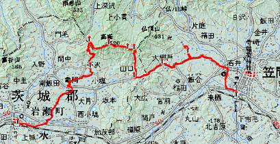 ここでかなり時間をロスしてしまい、岩瀬までの長いロードは距離以上に長く感じた。あとは平地を進むだけだし、雨引山・御嶽山を目指して進めばいいので間違えることもなかったが、もうこの山には2度と来たくない。