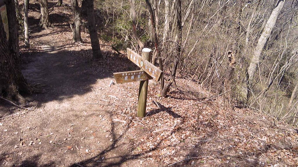 下り始めてすぐに行先が読めない分岐点に突き当たった。「大」と読めるので五大力堂に下りる登山道のような気がしたのだが、1/25000図だともう少し先のように見えるし、傾斜も急だったのでやめておいた。いざとなれば県道登山口まで出てもいい。