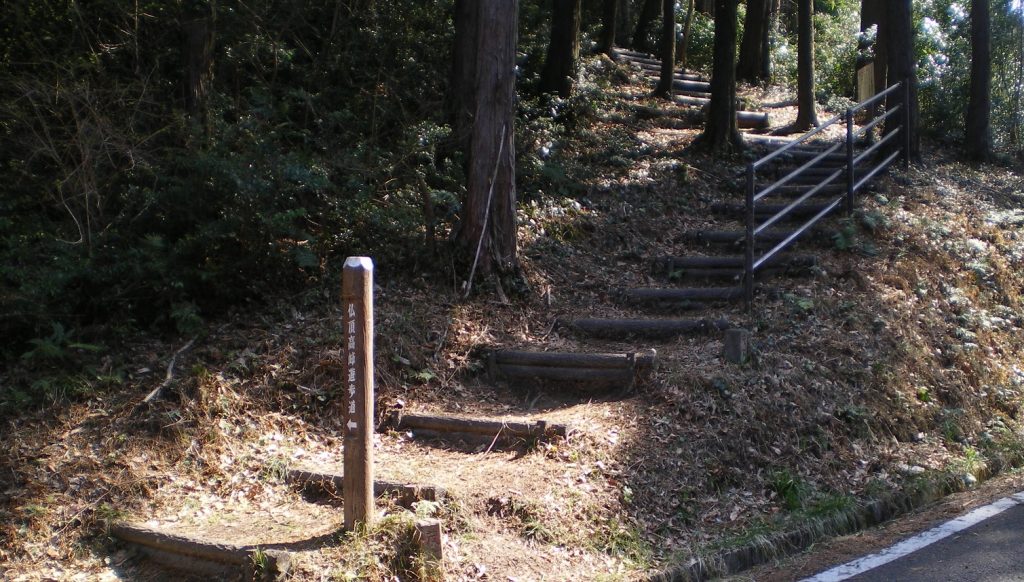 急坂を下っていくと、登山口までは意外と近い。茨城側に下りる道もあるらしいが、分岐が分からなかった。