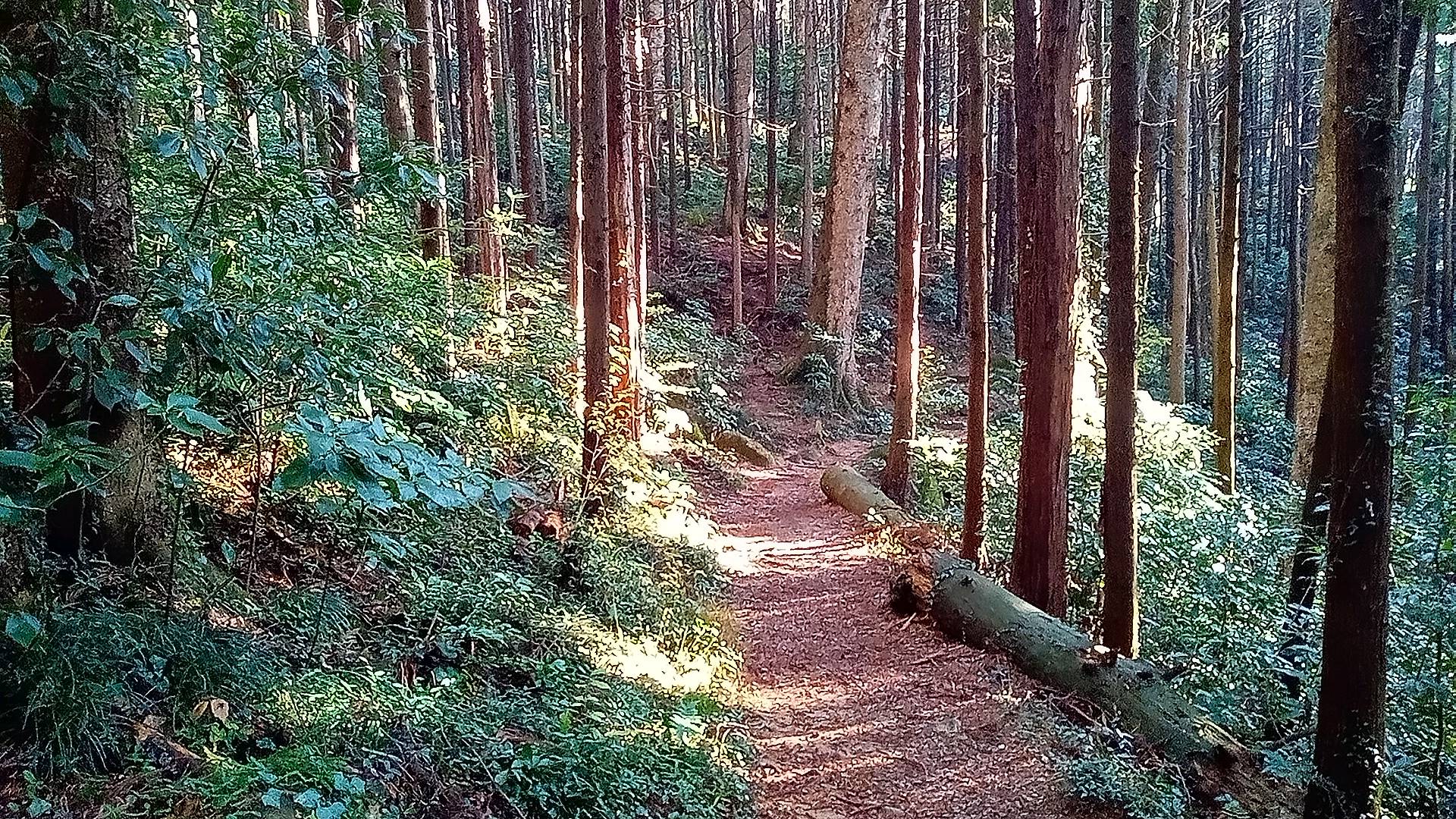 このコースは頂上に直接つながる道ではないし、ずっと林の中で展望が全くなく、眺めを楽しむことはできない。しかし、フィトンチッド満載で、筑波山の他のコースとは違って静かなのは何よりのごちそうである。