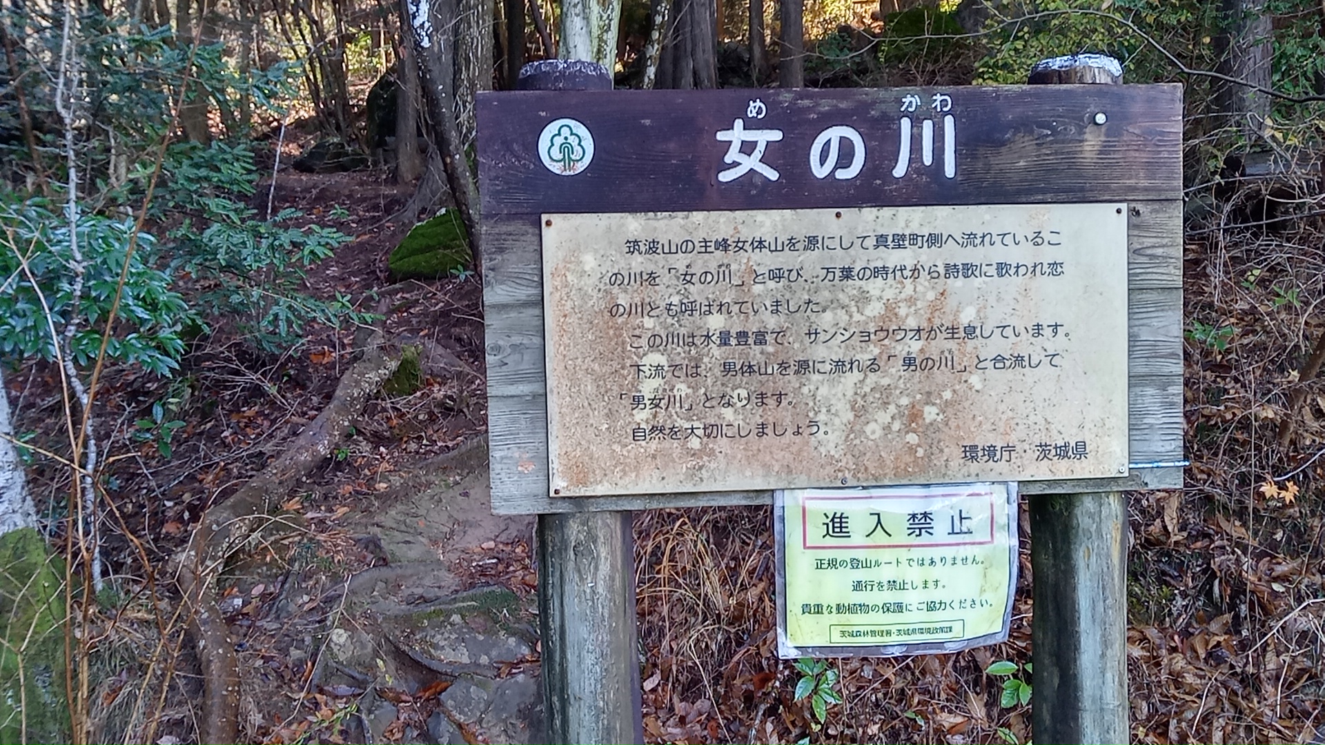 2021年12月15日、この日は筑波山である。昨シーズンに行くことができなかった女の川(めのかわ)コースを目指し、筑波山神社に車を止めて迎場コース、東筑波コースと筑波山を半周して女の川登山口に着いたのだが、掲示板の下にワープロ印刷の注意書きが下がっている。