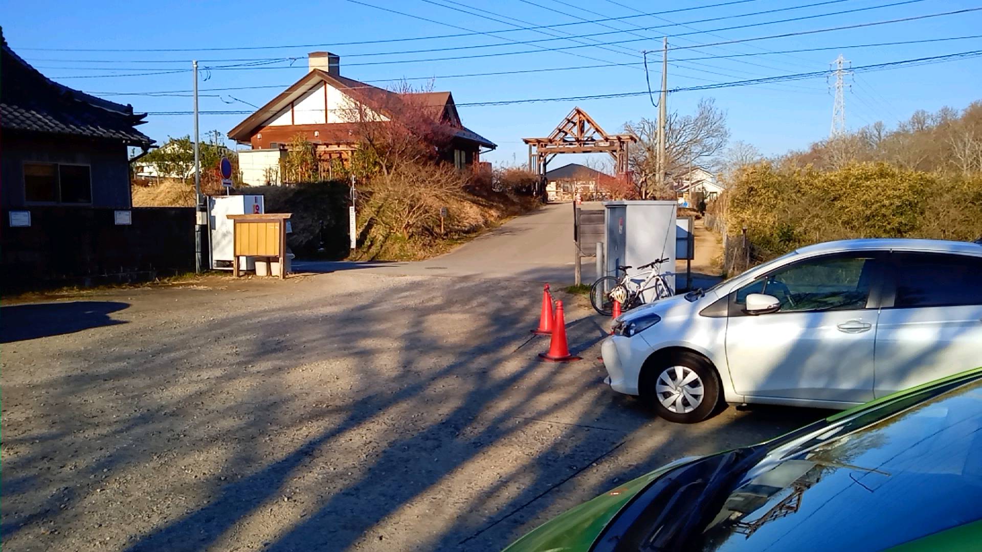 小町山登山口は、土浦市の施設「小町の館」近くにある。登山者は外に止めるよう注意書きがある。