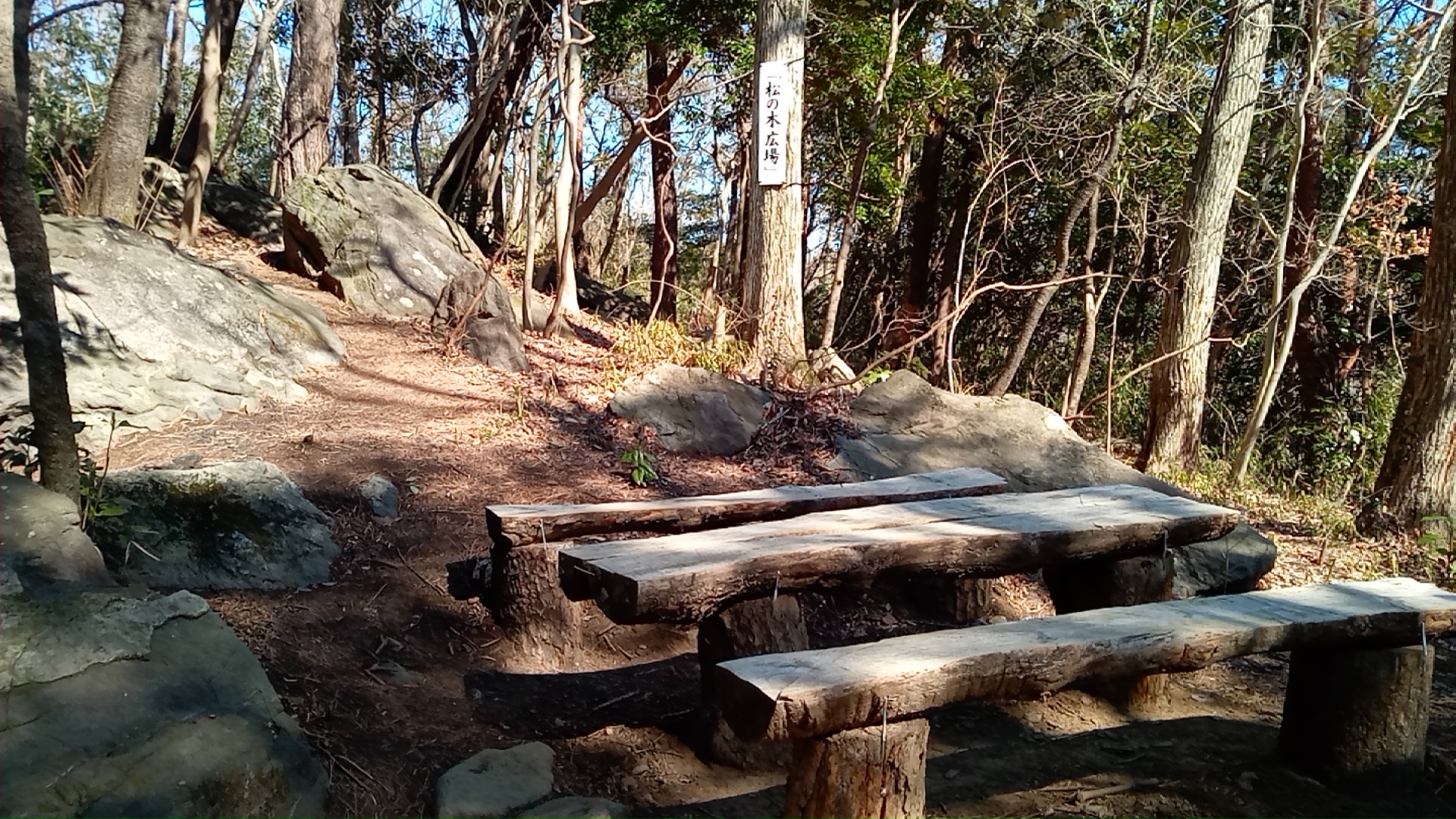 ハイキングコースに合流して、尾根を少し登ると松の木広場である。付近は木々を伐採して、テーブル付ベンチが4つ5つ置かれている。おそらく、国有林でこれをされたら困るということなのだろう。