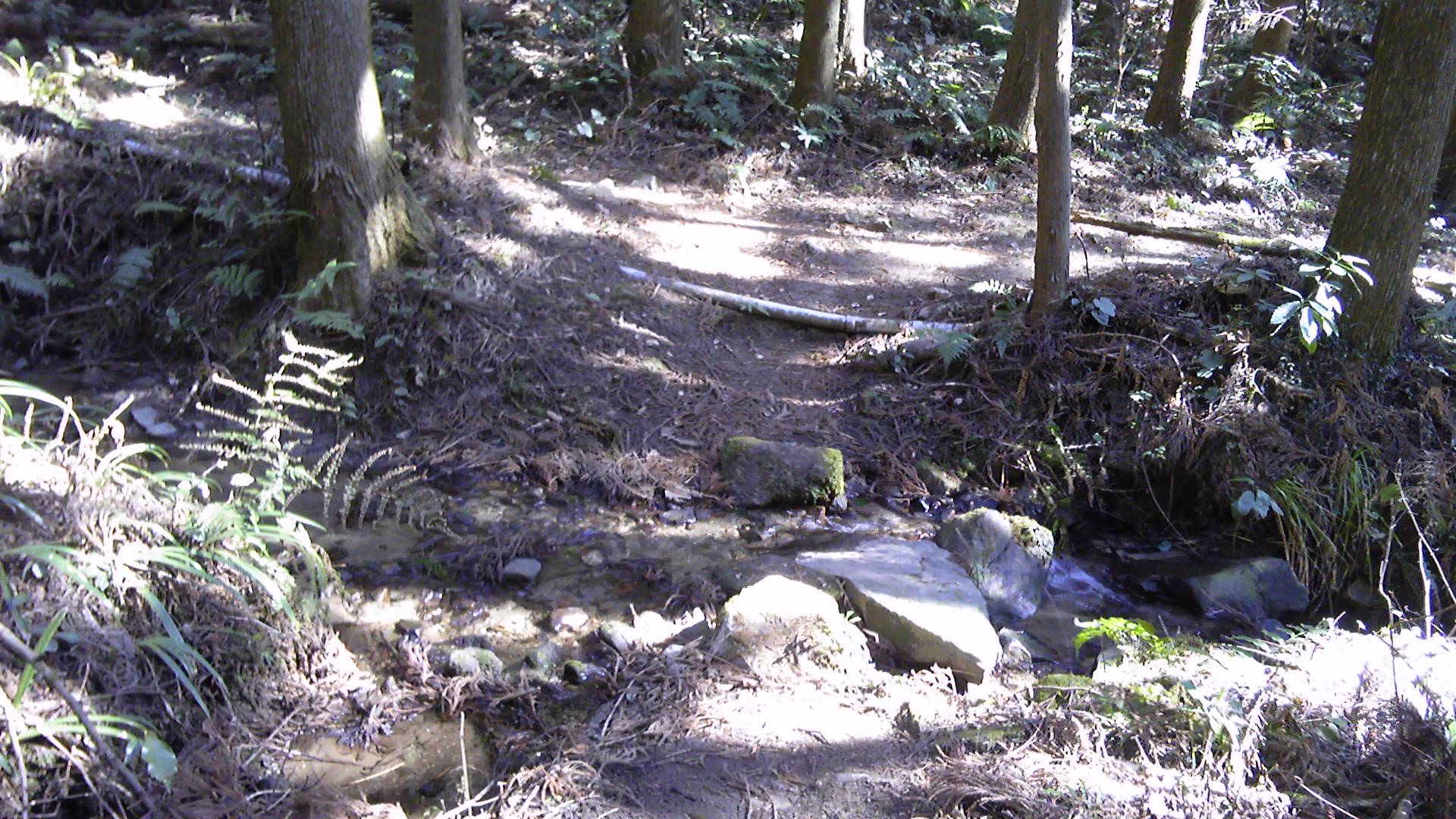 おじさんのアドバイスに従い左に進路をとる。すぐに沢を越えるがここで左からの道が合流する。私が思っていた三叉路で曲がってもここで合流しただろう。