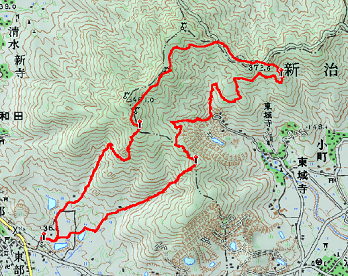 後でGPSを見ると、軌跡は東城寺の上あたりまで続いていた。あるいは、あの道は宝筐山A-4標識から下った道につながっているのではないのだろうか。
