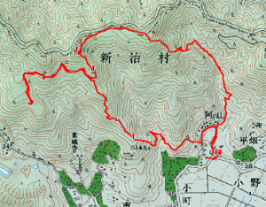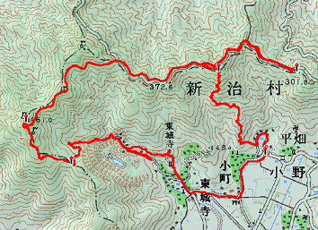 下山は極楽寺ルートから直に小田休憩所に下りる。本丸広場を出てすぐ傾斜のきつい沢道となり、それが長く続く。下りで使うのは今回初めてだが、最後は少々ヒザに来た。400mそこそこの山だが、この日の累積高低差はヤマケイオンラインの計算によると900mあったようだ。