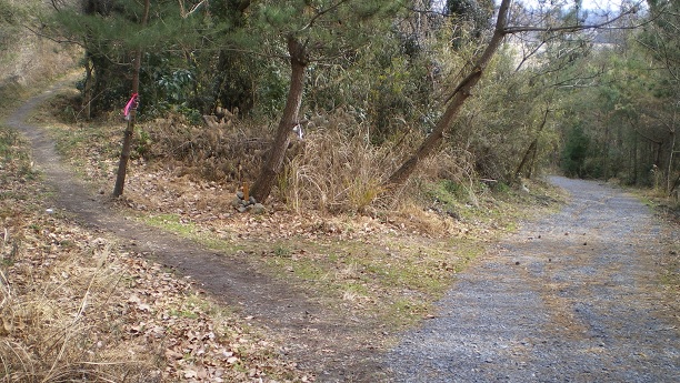 まさにその道である。山道だからTの字になっている訳ではないが、水道施設のような場所に出るあたりで、右と左に三叉路になっている場所がある。