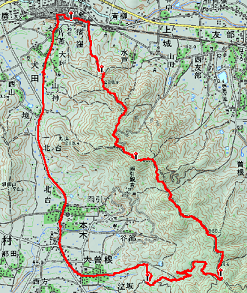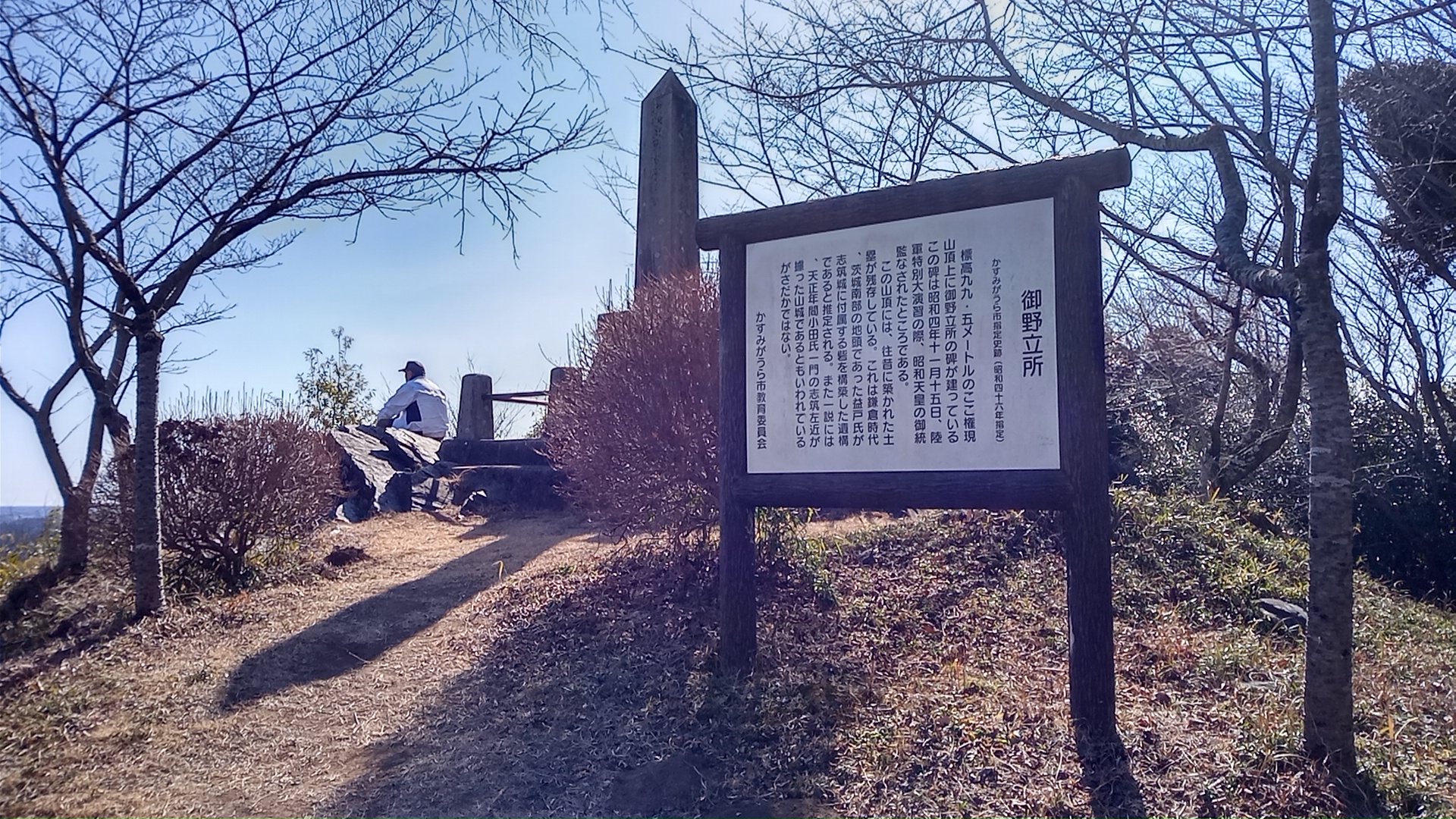 以前登った雪入山では、三ツ石森林公園に車を停めて青年の家から雪入山・浅間山を回ったが、この稜線が平地に出る所には昭和天皇が軍事演習を視察した御野立所という場所があるらしい。どうせならそこまで歩いてみたい。