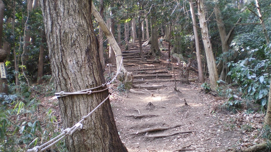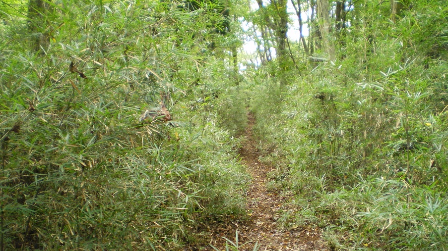 立札で注意喚起するところでは、国有林では歩道の作設、備品の設置等はできないそうである。ということは、歩きやすくするために下草や竹薮を刈り払ったり、ベンチを置いたりするのもNGである。小町山周辺では、頻繁に行われていることである。