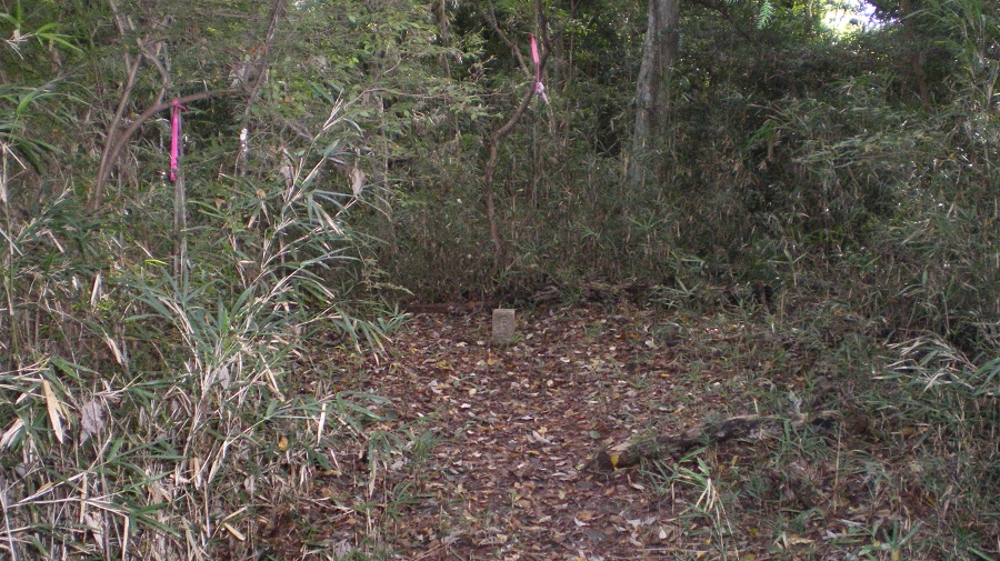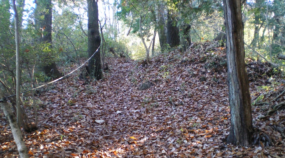 宝篋城の中心部には初めて入ったが、大きな石がいくつかあって周囲に土塁や空堀があるだけで、それらも説明してなければ自然の地形かと思うくらいである。広さ(狭さ)といい石だけなことといい、水の手が見えないことも含めて、近くの難台城とよく似た感じである。