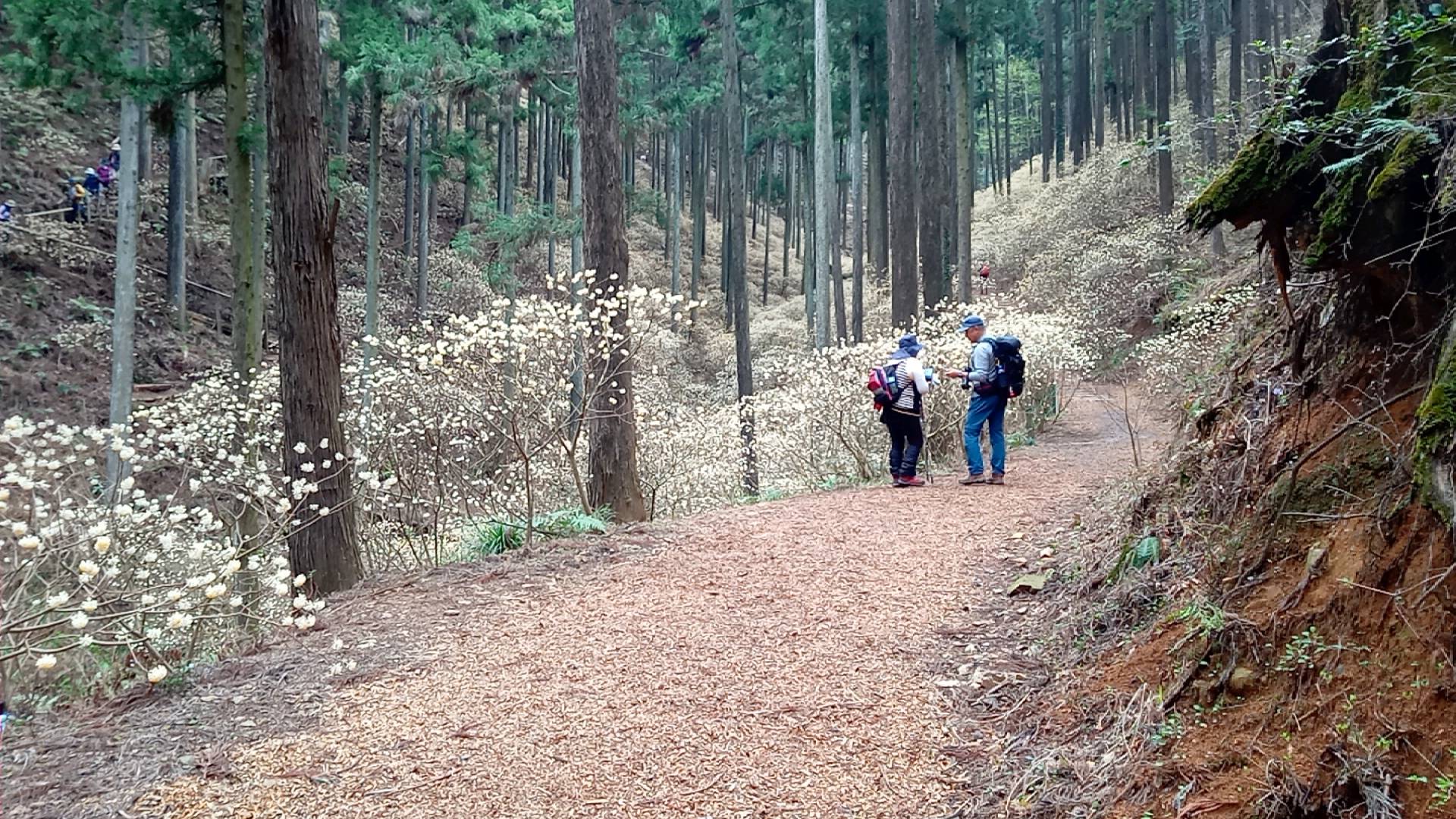 少し下で休憩中だった地元のおじさんに聞くと、「四十人だって。東京から来たんだそうだ」とやはり驚いていた。時刻は11時。鶏足山・焼森山に登るにせよ、ミツマタ群生地を見に来たにせよ(おそらくそうだろう)、昼食や休憩なしで済ます時間とは思えない。