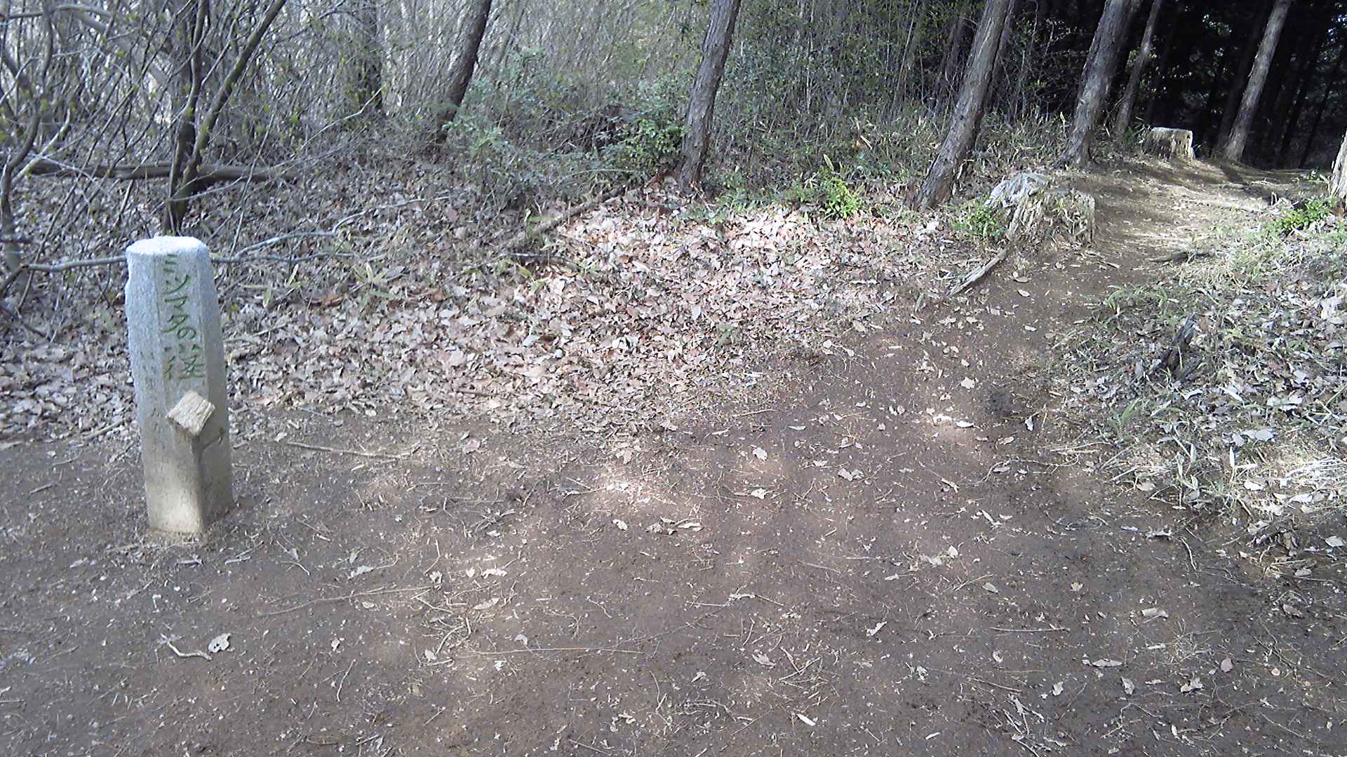 道は踏み跡というよりはっきりした登山道で、迷う場所も危険個所もない。女体山直下の岩場の方がずっと危ない。途中に林界標の杭があるから、もともと林業で使われていた道なのかもしれない。