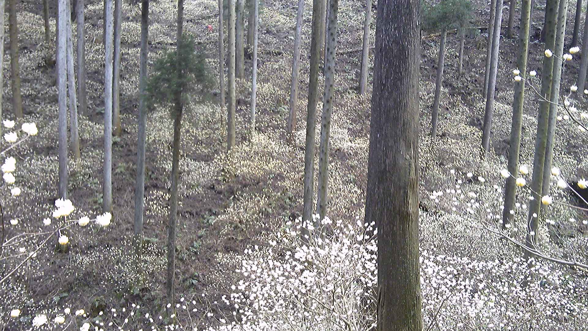 ミツマタ群生地はひとつの谷をまるごとミツマタで埋めてしまったような壮大な森。300円の保全協力金を払うだけのことはある。
