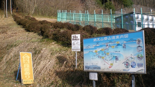 ようやく採石場が終わって田舎道になると、間もなく鶏足山の赤沢登山口である。20台くらい止められる駐車場の他に、さらに30~40台止められる臨時駐車場を用意してくれている。しかし、トイレは男女1つずつしかない。